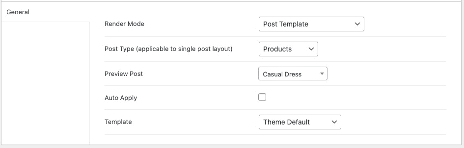 - In the Preview Post, please select an existing Product by typing its title. This post is used to show preview data while creating the layout.