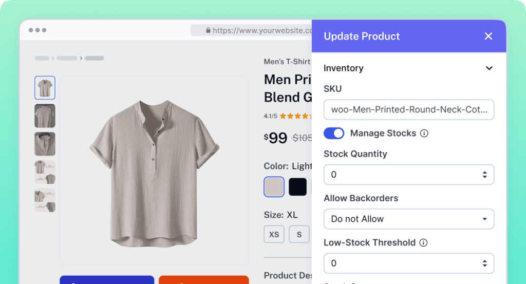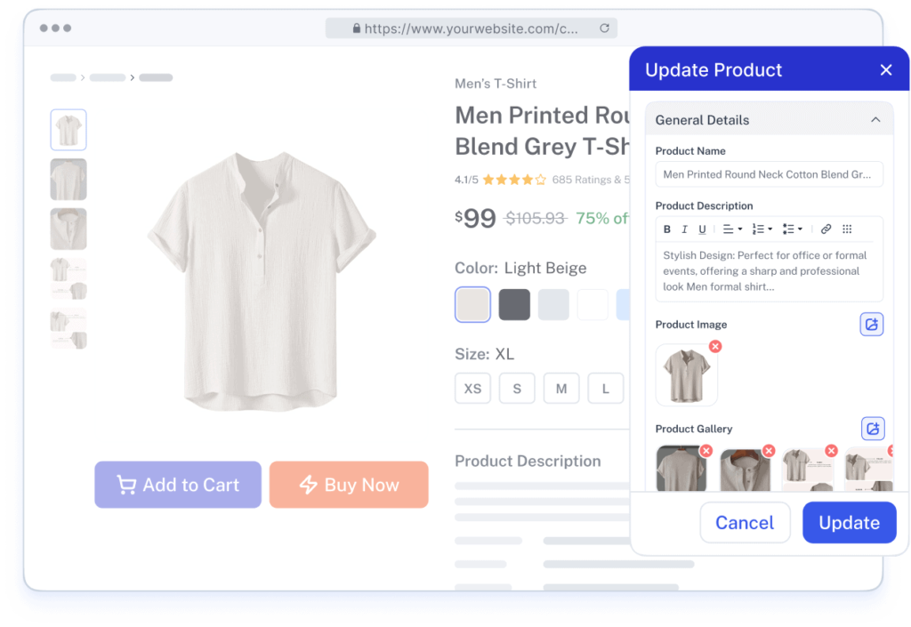Say goodbye to the hassle of backend navigation. With our Frontend Product Editor, you can make changes directly from the product page, saving time and simplifying your workflow.