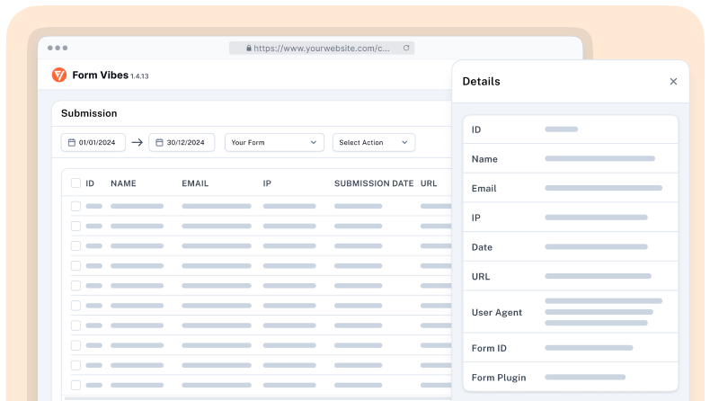 Form Vibes saves your form submissions in the WordPress database, offering detailed analytics, filtering options, and easy export capabilities. It enhances submission management with advanced features like access control and frontend display options.